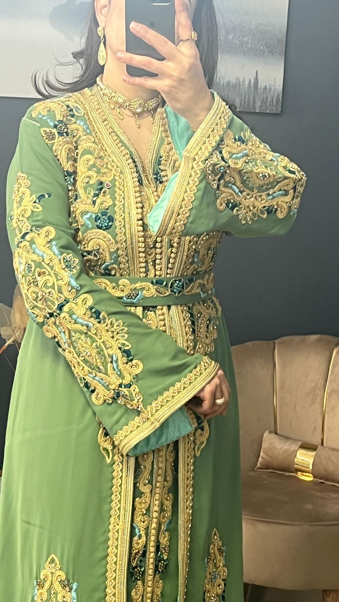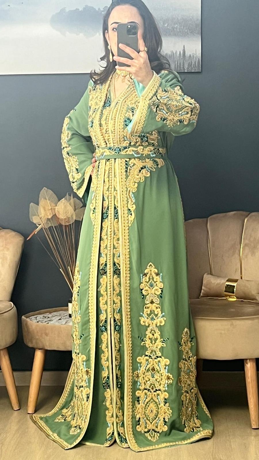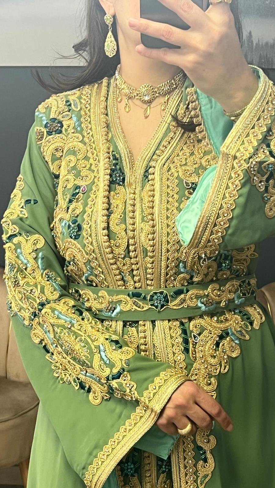 الخام كريب ناعم شك مع تطريز يدوي اللون اخضر