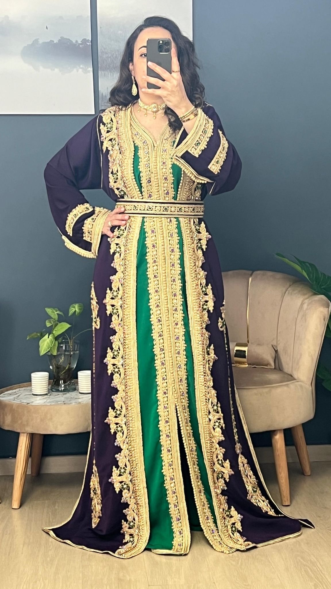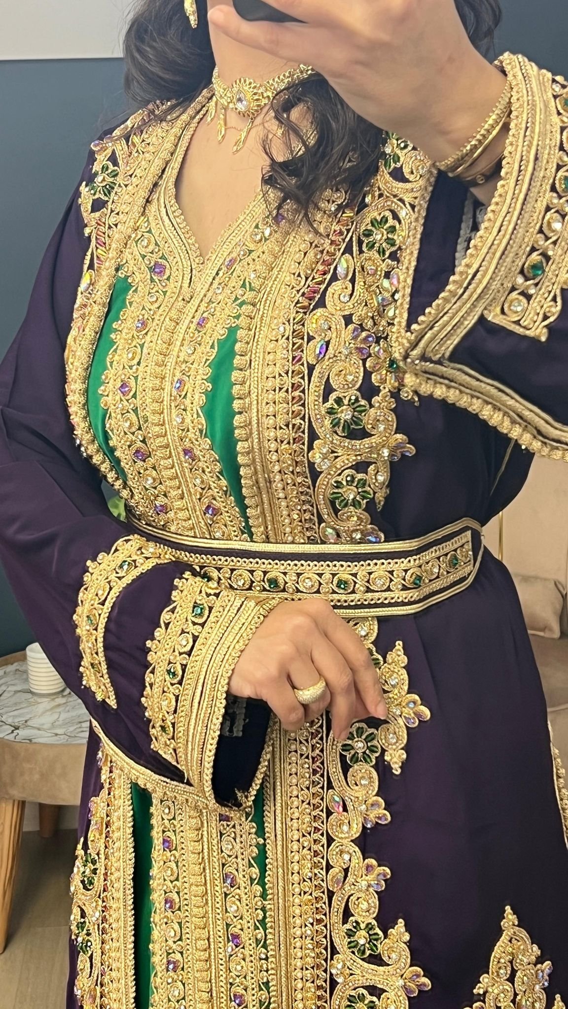 تكشيطه مغربيه اللون بنفسجي بطانه اخضر