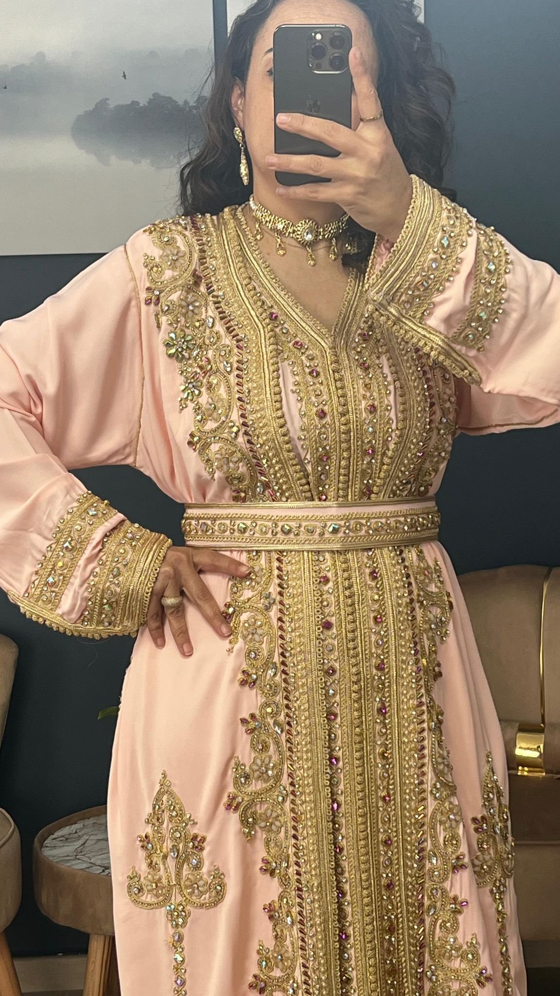 الخام كريب ناعم شك مع تطريز يدوي اللون وردي فاتح